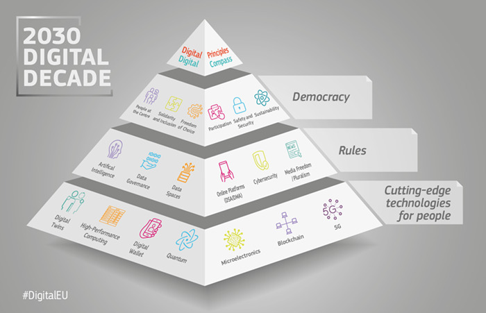 Im Jahr 2021 präsentierte die Europäische Kommission ihre Digitalstrategie. Das Programm für die digitale Dekade 2030 hat dabei konkrete Ziele zur Förderung des digitalen Wandels in Europa gesetzt. Es umfasst die Stärkung digitaler Kompetenzen, den Ausbau digitaler Infrastrukturen, die Förderung von Innovationen in Unternehmen und die Digitalisierung öffentlicher Dienste. Die folgenden vier Ziele stehen bis 2030 dabei im Vordergrund: