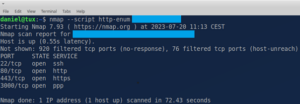 Wir beschließen, einen nmap-Scan nach offenen Ports und Verzeichnissen durchzuführen, die eventuell mit dem Skriptparameter http-enum von nmap offengelegt werden.