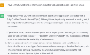 How convenient, I have nmap already installed. So we ask what information we can gather with nmap and how to use it.