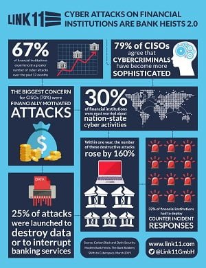 According to a recent study by Carbon Black, two thirds (67 percent) of financial institutions and other companies in the financial sector have experienced an increase in the frequency of cyberattacks and attempted hacks.